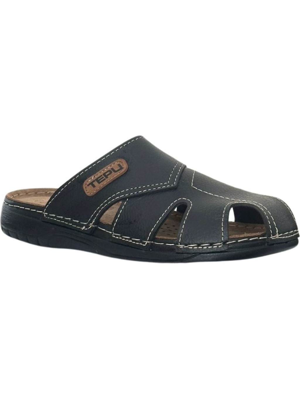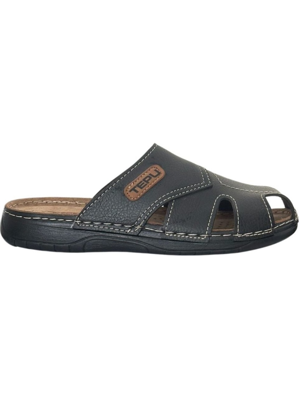 Naturela Comfort Erkek Yazlık Rahat Taban Suni Deri Tek Cırt Cırtlı Tek Tokalı Ayarlanabilir Günlük Terlik