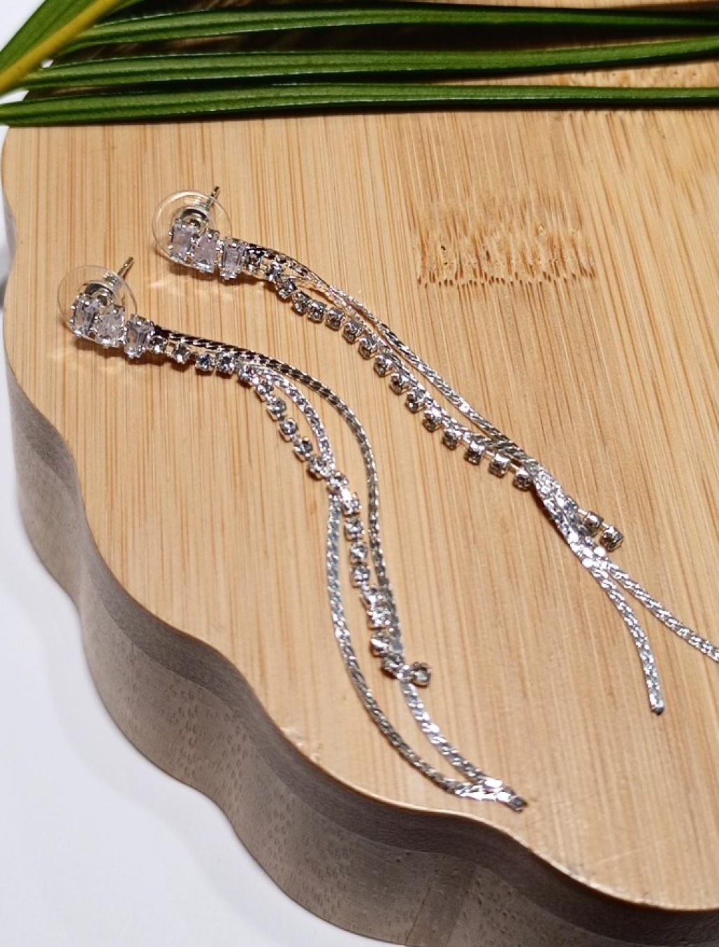 Monalisa Home Lüks Gümüş Renk Taşlı Abiye Küpe