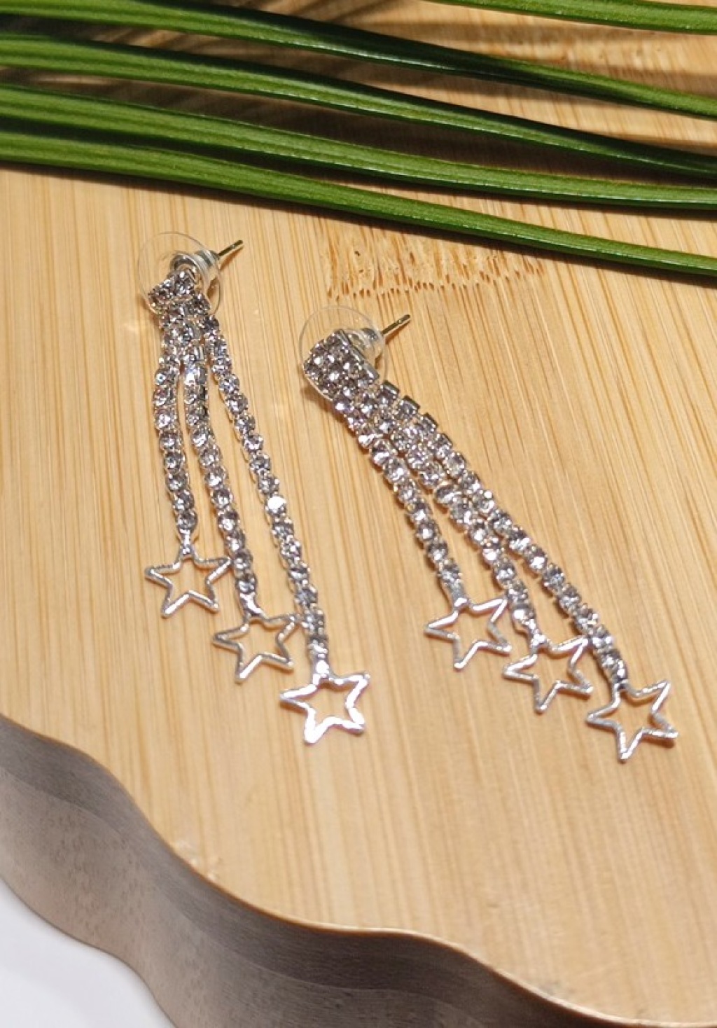 Monalisa Home Lüks Gümüş Renk Taşlı Abiye Küpe
